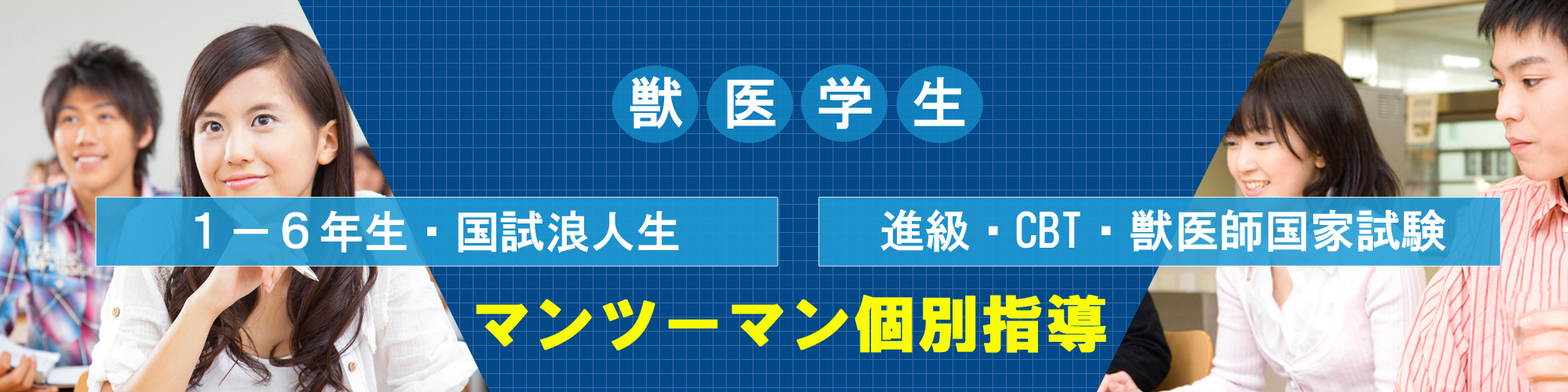獣医師国試対策アカデミーでは、そのような国家試験を目指す学生の力になるために、進級・CBT試験・国家試験に向けてマンツーマン個別指導を行っております。